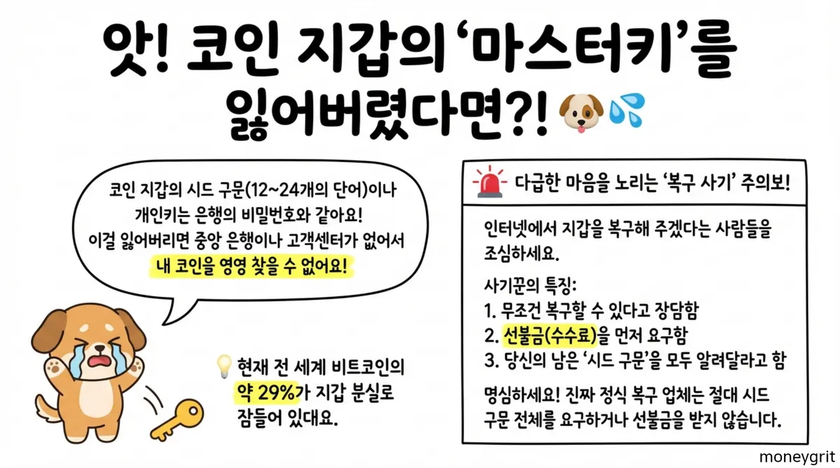 주의해야 할 점은 지갑 복구를 빌미로 행해지는 사기 행각이 매우 빈번하다는 사실이다. 지갑 복구 업체가 작업을 시작하기 전에 미리 수수료를 요구하거나 시드 구문 전체를 알려달라고 하는 경우는 100% 사기라고 보아야 한다. 2024년 FBI 발표에 따르면 암호화폐 투자 사기 피해액은 무려 93억 달러에 달하며 복구 사기도 큰 비중을 차지한다. 가상자산 지갑 복구를 시도할 때는 반드시 신뢰할 수 있는 경로를 통해 검증된 방법만을 사용해야 한다.
