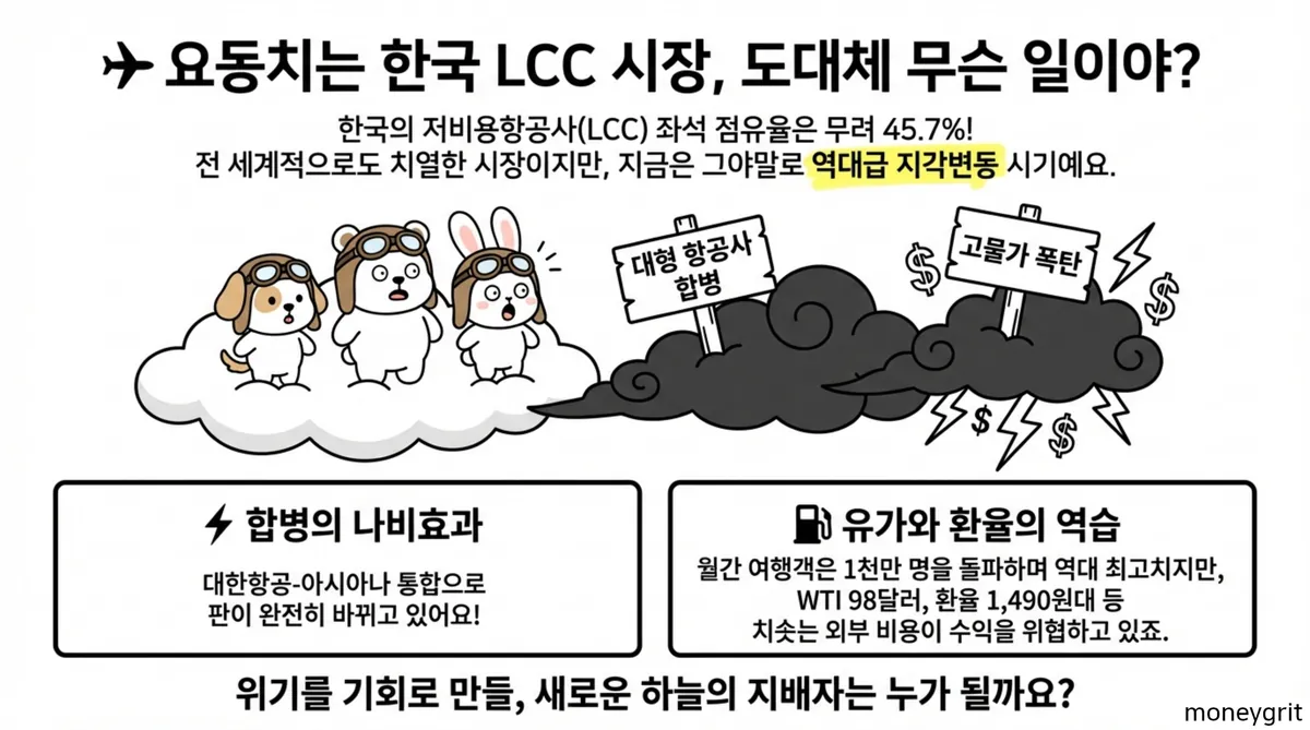 국내 LCC 시장은 메가 LCC의 출범과 장거리 노선 확장이라는 거대한 변화의 흐름 속에 있다. 여객 수요는 최고치를 경신 중이지만 국제 유가 상승과 고환율 환경은 기업들의 수익성을 압박하는 요인이다. 투자자들은 각 기업의 재무 건전성과 통합 과정을 면밀히 살펴야 한다. 아래 표는 LCC 항공 관련주 TOP 3의 핵심 지표를 비교한 결과다.
