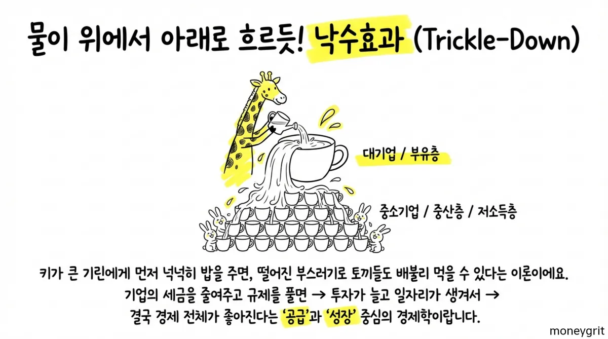 | 구분 | 낙수 효과 (Trickle-down) | 분수 효과 (Fountain) |