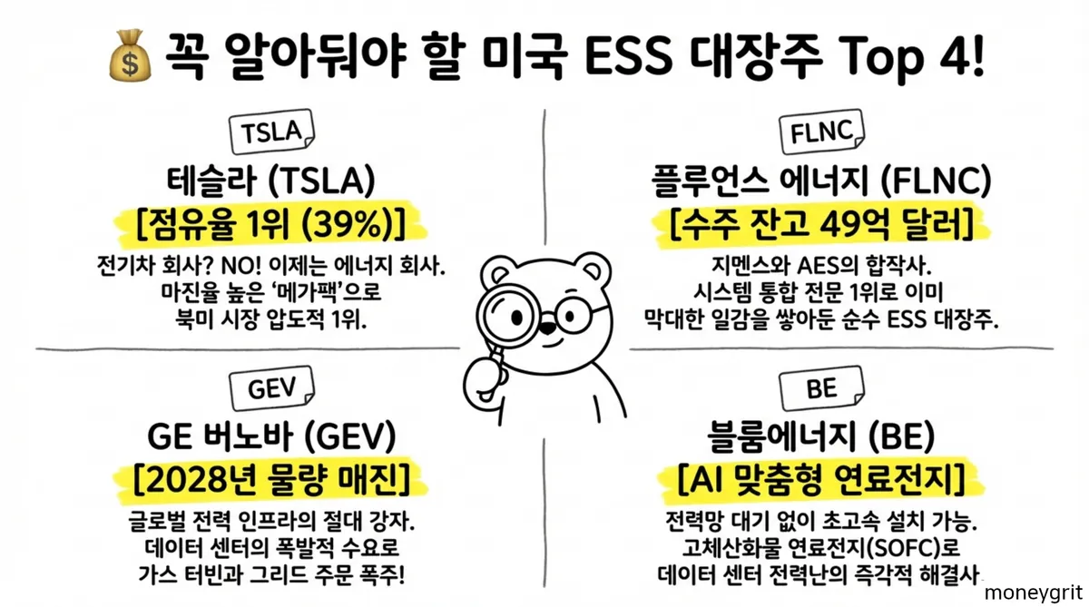 상하이 생산 기지 가동을 통해 연간 40GWh의 제조 능력을 추가하며 지배력을 공고히 하고 있다. 플루언스 에너지는 계통 규모의 시스템 통합 분야에서 선두를 달리는 순수 업체다. 지멘스와 에이에스이의 합작사로 출발한 이들은 현재 약 49억 달러라는 막대한 수주 잔고를 확보하고 있다. 제너럴 일렉트릭 버노바 또한 2026년 최선호주로 꼽힌다.