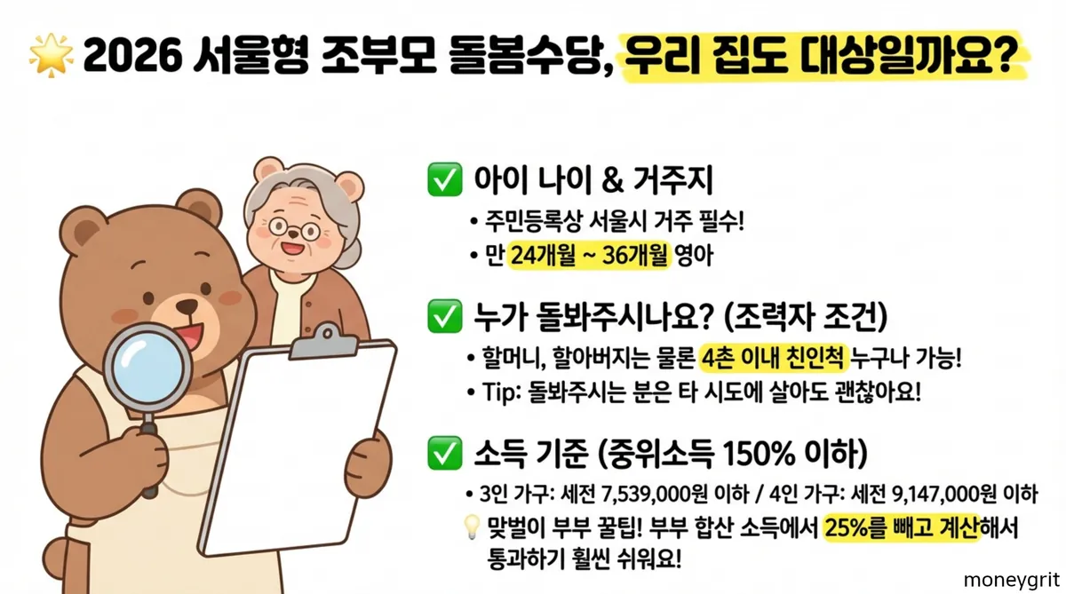 복지 제도의 실질적인 혜택이 가계 경제에 미치는 영향이 매우 크다. 서울시에서 시행 중인 서울시 조부모 돌봄수당은 맞벌이 부부의 양육 부담을 직접적으로 덜어주는 대표적인 정책으로 꼽힌다. 이 제도는 단순한 현금 지원을 넘어 조부모의 노동 가치를 공식적으로 인정했다는 점에서 경제적, 사회적으로 중요한 의미를 지닌다.