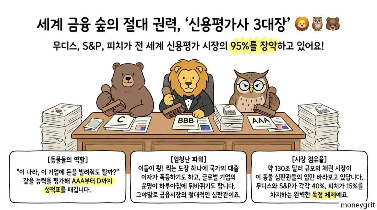 세계 3대 신용평가사 평가는 단순한 점수 매기기를 넘어 글로벌 자금의 흐름을 통제하는 권력을 가진다. 등급이 한 단계만 하락해도 해당 국가나 기업은 막대한 이자 부담을 안게 되는 것이 현실이다.