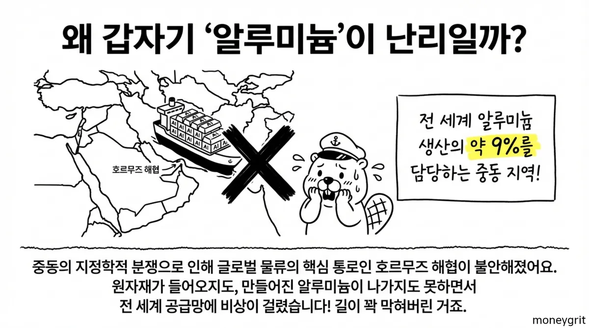 최근 미국과 이란 사이의 지정학적 갈등이 심화되면서 글로벌 원자재 시장이 요동치고 있다. 특히 중동 지역은 전 세계 알루미늄 공급의 핵심 축을 담당하고 있어 이번 분쟁은 공급망 전체에 막대한 영향을 미치는 중이다. 공급 차질 우려로 국제 가격이 급등하는 가운데 국내외 주요 알루미늄 기업들이 투자자들의 주목을 받는 이유와 핵심 수혜주를 자세히 분석한다.