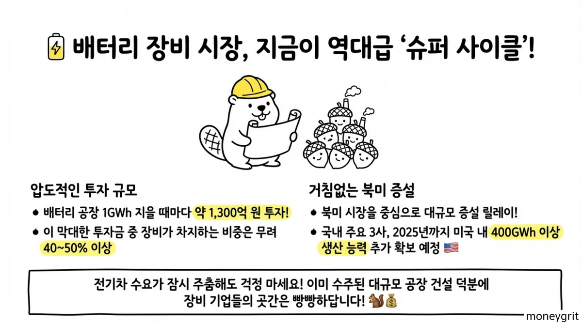 | 평균 설비 투자액 | 1GWh당 약 1,300억 원 | 북미 지역 400GWh 증설 시 대규모 발주 |