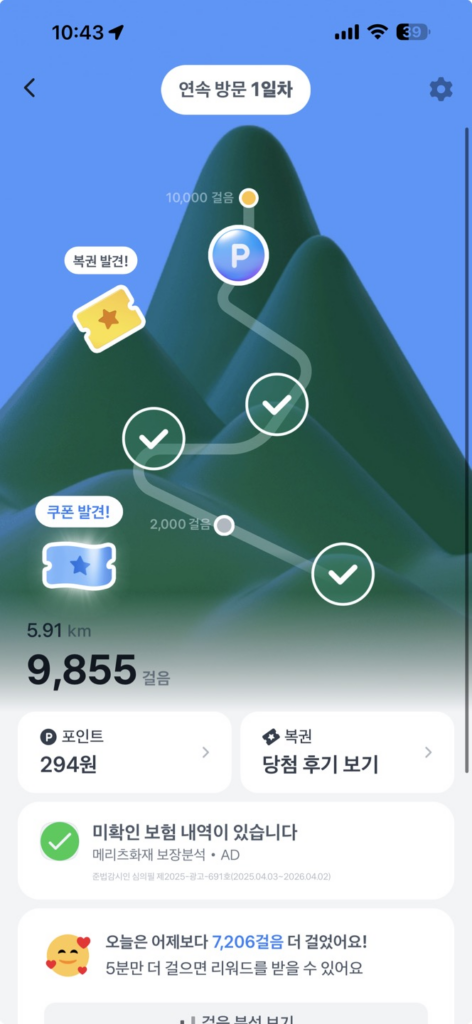 2026년 앱테크 걷기 미션 어플 TOP 3 첫 번째 주자인 토스 만보기는 사용자 접근성이 가장 뛰어나다. 1만 보 달성 시 기본 40원을 지급하며 지도에 표시된 특정 장소 방문 시 하루 최대 100원의 추가 보상을 제공한다. 보상금은 1대1 비율로 수수료 없이 즉시 본인 계좌로 현금 출금이 가능하다는 점이 가장 큰 장점이다.