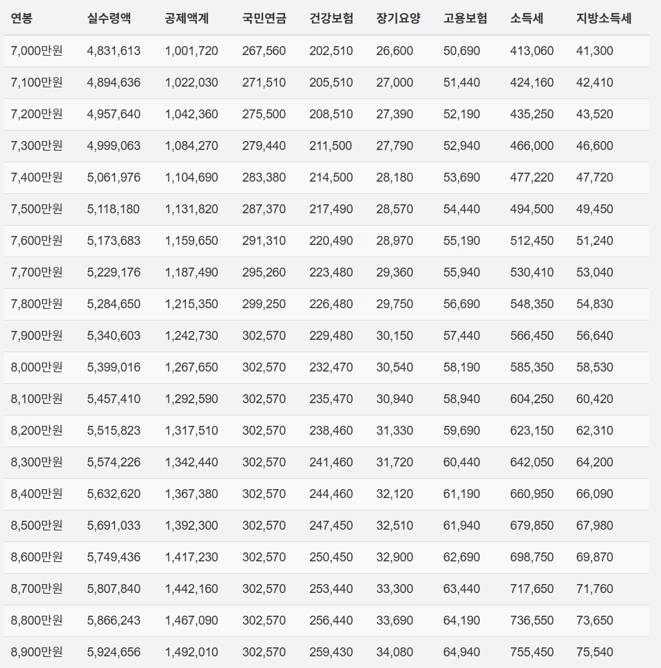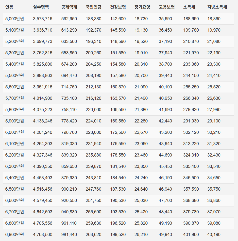 2026년 연봉 실수령액 기준